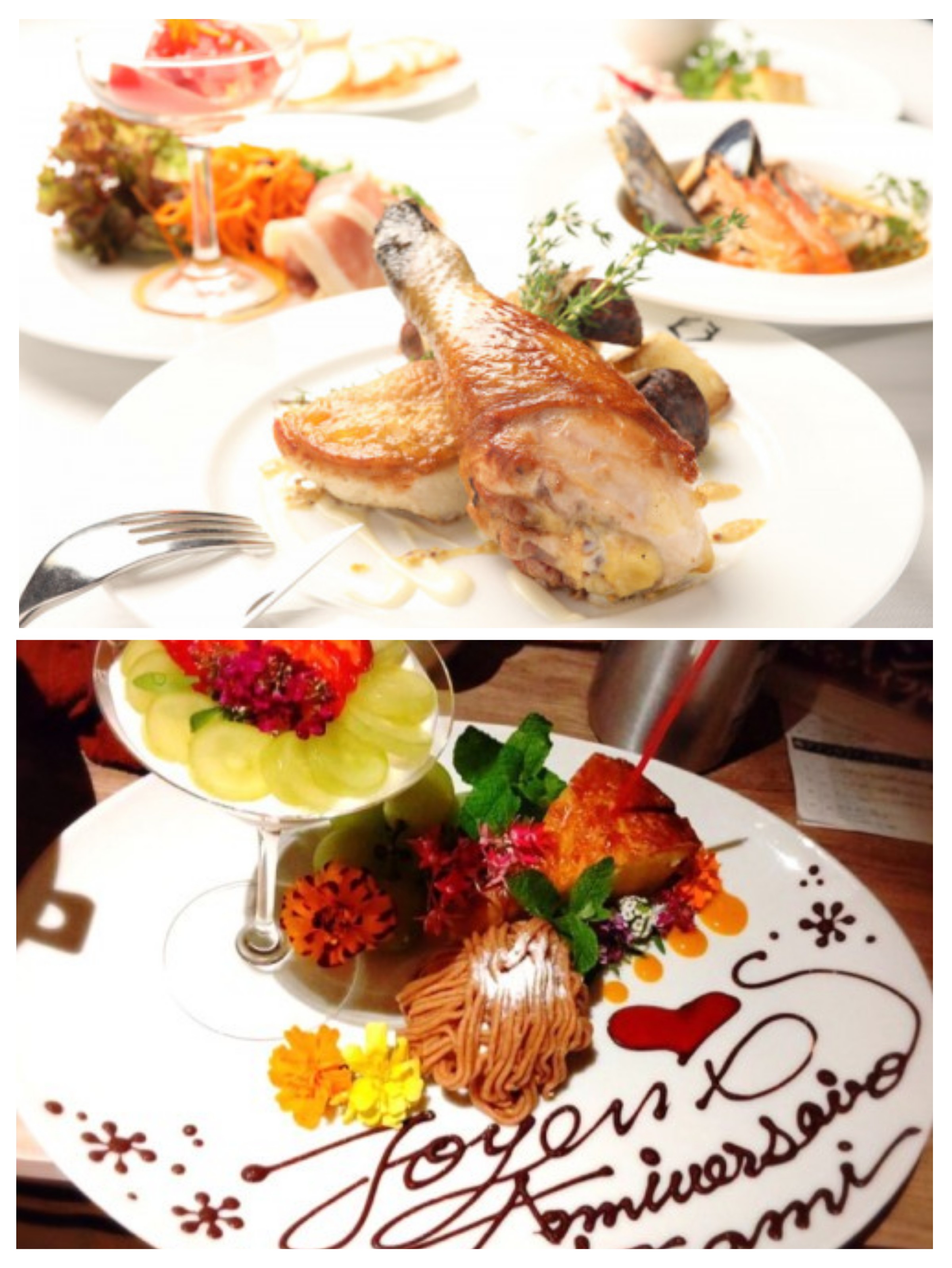 記念日や誕生日のお祝いにメッセージ付きデザートプレートをご用意いたします。ご予約時にお知らせください。